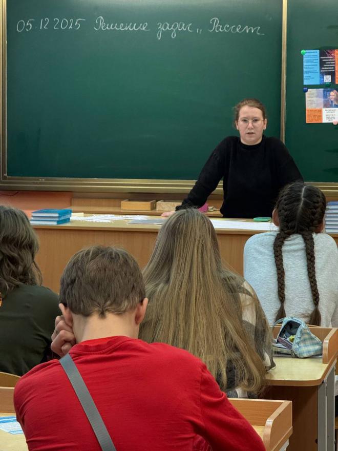 5 декабря в ГУО "Средняя школа № 7" г. Речицы состоялась профориентационная встреча студентки факультета математики и технологий программирования группы ПРО-21 Шкандратовой Юлии с одиннадцатиклассниками. Юлия подробно рассказала о специальностях, об учёбе и внеучебной деятельности студентов факультета.