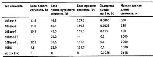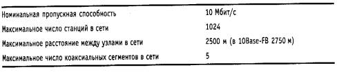 Таблица 3.4. Параметры спецификаций физического уровня для стандарта Ethernet