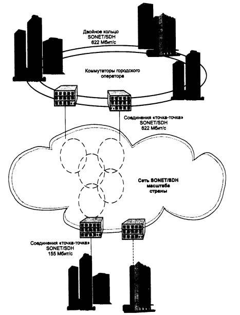 Стек протоколов и основные структурные элементы сети SONET/SDH показаны на рис. 6.7.