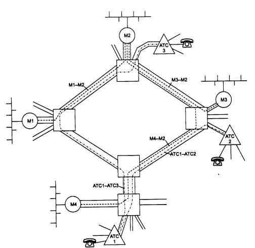 Рис. 6.11. Использование цифровой первичной сети для организации двух наложенных сетей - вычислительной и телефонной Технология SONET/SDH очень экономично решает задачу мультиплексирования и коммутации потоков различной скорости, поэтому сегодня она, несмотря на невозможность динамического перераспределения пропускной способности между абонентскими каналами, является наиболее распространенной технологией создания первичных сетей. Технология АТМ, которая хотя и позволяет динамически перераспределять пропускную способность каналов, получилась значительно сложнее, и уровень накладных расходов у нее гораздо выше. Примером российских сетей SDH могут служить сети «Макомнет», «Метро-ком» и «Раском», построенные совместными предприятиями с участием американской компании Andrew Corporation. Начало создания сети «Макомнет» относится к 1991 году, когда было образовано совместное предприятие, учредителями которого выступили Московский метрополитен и компания Andrew Corporation. Транспортной средой сети стали одномодовые 32-, 16-и 8-жильные волоконно-оптические кабели фирмы Pirelli, проложенные в туннелях метрополитена. В метро было уложено более 350 км кабеля. Постоянно расширяясь, сегодня кабельная система «Макомнет» с учетом соединений «последней мили» имеет длину уже более 1000 километров. Изначально в сети «Макомнет» использовалось оборудование SDH только 1 уровня (155 Мбит/с) - мультиплексоры TN-1X фирмы Northern Telecom (Nortel), обладающие функциями коммутации 63 каналов Е1 по 2 Мбит/с каждый. Из данных мультиплексоров были организованы две кольцевые топологии «Восточная» и «Западная» (они разделили кольцевую линию метрополитена на два полукольца вдоль Сокольнической линии) и несколько отрезков «точка-точка», протянувшихся к ряду клиентов, абонировавших сравнительно большие емкости сети. Эти кольца образовали магистраль сети, от которой ответвлялись связи с абонентами. Растущие день ото дня потребности заказчиков заставляли создавать новые топологии и переконфигурировать старые. В течение двух лет в сети «Макомнет» задача увеличения пропускной способности решалась за счет прокладки новых кабелей и установки нового оборудования, что позволило утроить количество топологий по кольцевой линии. Число узлов коммутации возросло до семидесяти. Но настал момент, когда остро встал вопрос о количестве резервных оптических волокон на некоторых участках сети, и с учетом прогнозов на развитие было принято решение о построении нового, 4-го уровня SDH (622 Мбит/с). Подготовительные работы по переконфигурированию и введению действующих потоков в сеть нового уровня происходили без прекращения работы сети в целом. В качестве оборудования 4 уровня (622 Мбит/с) были установлены мультиплексоры TN-4X фирмы Nortel. Вместе с новым оборудованием была приобретена принципиально новая высокоинтеллектуальная система управления NRM (Network Resource Manager). Эта система является надстройкой над системами управления оборудования 1 и 4 уровней. Она обладает не только всеми функциями контроля оборудования, присущими каждой из систем, но и рядом дополнительных возможностей: автоматической прокладки канала по сети, когда оператору требуется лишь указать начальную и конечную точки; функциями инвентаризации каналов, обеспечивающих их быстрый поиск в системе, и рядом других. Ввод всего шести узлов TN-4X знач