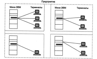 Рис. 1.3. Автономное использование нескольких мини-компьютеров на одном предприятии