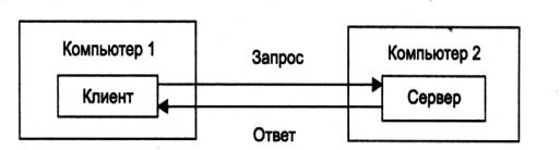 Рис. 1.5. Взаимодействие частей распределенного приложения До сих пор речь шла о системных распределенных программах. Однако в сети могут выполняться и распределенные пользовательские программы - приложения. Распределенное приложение также состоит из нескольких частей, каждая и которых выполняет какую-то определенную законченную работу по решению прикладной задачи. Например, одна часть приложения, выполняющаяся на компьютере пользователя, может поддерживать специализированный графический интерфейс вторая - работать на мощном выделенном компьютере и заниматься статистической обработкой введенных пользователем данных, а третья - заносить полученные результаты в базу данных на компьютере с установленной стандартной СУБД. Распределенные приложения в полной мере используют потенциальные возможности распределенной обработки, предоставляемые вычислительной сетью, и поэтому часто называются сетевыми приложениями. Следует подчеркнуть, что не всякое приложение, выполняемое в сети, является сетевым. Существует большое количество популярных приложений, которые не являются распределенными и целиком выполняются на одном компьютере сети. Тем не менее и такие приложения могут использовать преимущества сети за счет встроенных в операционную систему сетевых служб. Значительная часть истории локальных сетей связана как раз с использованием таких нераспределенных приложений. Рассмотрим, например, как происходила работа пользователя с известной в свое время СУБД dBase. Обычно файлы базы данных, с которыми работали все пользователи сети, располагались на файловом сервере. Сама же СУБД хранилась на каждом клиентском компьютере в виде единого программного модуля. Программа dBase была рассчитана на обработку только локальных данных, то есть данных, расположенных на том же компьютере, что и сама программа. Пользователь запускал dBase на своем компьютере, и она искала данные на локальном диске, совершенно не принимая во внимание существование сети. Чтобы обрабатывать с помощью dBase данные на удаленном компьютере, пользователь обращался к услугам файловой службы, которая доставляла данные с сервера на клиентский компьютер и создавала для СУБД эффект их локального хранения. Большинство приложений, используемых в локальных сетях в середине 80-х годов, являлись обычными, нераспределенными приложениями. И это понятно - они были написаны для автономных компьютеров, а потом просто были перенесены в сетевую среду. Создание же распределенных приложений, хотя и сулило много преимуществ (уменьшение сетевого трафика, специализация компьютеров), оказалось делом совсем не простым. Нужно было решать множество дополнительных проблем - на сколько частей разбить приложение, какие функции возложить на каждую часть, как организовать взаимодействие этих частей, чтобы в случае сбоев и отказов оставшиеся части корректно завершали работу, и т. д., и т. п. Поэтому до сих пор только небольшая часть приложений является распределенными, хотя очевидно, что именно за этим классом приложений будущее, так как они в полной мере могут использовать потенциальные возможности сетей по распараллеливанию вычислений. 1.1.3. Основные программные и аппаратные компоненты сетиДаже в результате достаточно поверхностного рассмотрения работы в сети становится ясно, что выч