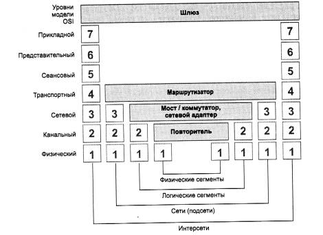 Рис.1.29. Соответствие функций различных устройств сети уровням модели OSI Модель OSI представляет хотя и очень важную, но только одну из многих моделей коммуникаций. Эти модели и связанные с ними стеки протоколов могут отличаться количеством уровней, их функциями, форматами сообщений, службами, поддерживаемыми на верхних уровнях, и прочими параметрами. 1.3.4. Понятие «открытая система»Модель OSI, как это следует из ее названия (Open System Interconnection), описывает взаимосвязи открытых систем. Что же такое открытая система? В широком смысле открытой системой может быть названа любая система (компьютер, вычислительная сеть, ОС, программный пакет, другие аппаратные и программные продукты), которая построена в соответствии с открытыми спецификациями. Напомним, что под термином «спецификация» (в вычислительной технике) понимают формализованное описание аппаратных или программных компонентов, способов их функционирования, взаимодействия с другими компонентами, условий эксплуатации, ограничений и особых характеристик. Понятно, что не всякая спецификация является стандартом. В свою очередь, под открытыми спецификациями понимаются опубликованные, общедоступные спецификации, соответствующие стандартам и принятые в результате достижения согласия после всестороннего обсуждения всеми заинтересованными сторонами. Использование при разработке систем открытых спецификаций позволяет третьим сторонам разрабатывать для этих систем различные аппаратные или программные средства расширения и модификации, а также создавать программно-аппаратные комплексы из продуктов разных производителей. Для реальных систем полная открытость является недостижимым идеалом. Как правило, даже в системах, называемых открытыми, этому определению соответствуют лишь некоторые части, поддерживающие внешние интерфейсы. Например, открытость семейства операционных систем Unix заключается, кроме всего прочего, в наличии стандартизованного программного интерфейса между ядром и приложениями, что позволяет легко переносить приложения из среды одной версии Unix в среду другой версии. Еще одним примером частичной открытости является применение в достаточно закрытой операционной системе Novell NetWare открытого интерфейса Open Driver Interface (ODI) для включения в систему драйверов сетевых адаптеров независимых производителей. Чем больше открытых спецификаций использовано при разработке системы, тем более открытой она является. Модель OSI касается только одного аспекта открытости, а именно открытости средств взаимодействия устройств, связанных в вычислительную сеть. Здесь под открытой системой понимается сетевое устройство, готовое взаимодействовать с другими сетевыми устройствами с использованием стандартных правил, определяющих формат, содержание и значение принимаемых и отправляемых сообщений. Если две сети построены с соблюдением принципов открытости, то это дает следующие преимущества:
