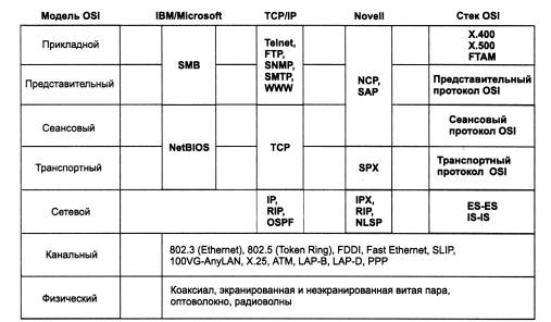 Рис. 1.30. Соответствие популярных стеков протоколов модели OSI Выводы