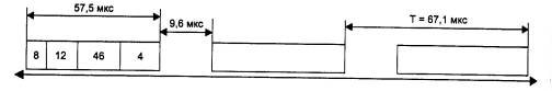 3.3.2. Максимальная производительность сети EthernetКоличество обрабатываемых кадров Ethernet в секунду часто указывается производителями мостов/коммутаторов и маршрутизаторов как основная характеристика производительности этих устройств. В свою очередь, интересно знать чистую максимальную пропускную способность сегмента Ethernet в кадрах в секунду в идеальном случае, когда в сети нет коллизий и нет дополнительных задержек, вносимых мостами и маршрутизаторами. Такой показатель помогает оценить требования к производительности коммуникационных устройств, так как в каждый порт устройства не может поступать больше кадров в единицу времени, чем позволяет это сделать соответствующий протокол. Для коммуникационного оборудования наиболее тяжелым режимом является обработка кадров минимальной длины. Это объясняется тем, что на обработку каждого кадра мост, коммутатор или маршрутизатор тратит примерно одно и то же время, связанное с просмотром таблицы продвижения пакета, формированием нового кадра (для маршрутизатора) и т. п. А количество кадров минимальной длины, поступающих на устройство в единицу времени, естественно больше, чем кадров любой другой длины. Другая характеристика производительности коммуникационного оборудования - бит в секунду - используется реже, так как она не говорит о том, какого размера кадры при этом обрабатывало устройство, а на кадрах максимального размера достичь высокой производительности, измеряемой в битах в секунду гораздо легче. Используя параметры, приведенные в табл. 3.1, рассчитаем максимальную производительность сегмента Ethernet в таких единицах, как число переданных кадров (пакетов) минимальной длины в секунду. ПРИМЕЧАНИЕ При указании пропускной способности сетей термины кадр и пакет обычно используются как синонимы. Соответственно, аналогичными являются и единицы измерения производительности frames-per-second, fps и packets-per-second, pps. Для расчета максимального количества кадров минимальной длины, проходящих по сегменту Ethernet, заметим, что размер кадра минимальной длины вместе с преамбулой составляет 72 байт или 576 бит (рис. 3.5.), поэтому на его передачу затрачивается 57,5 мкс. Прибавив межкадровый интервал в 9,6 мкс, получаем, что период следования кадров минимальной длины составляет 67,1 мкс. Отсюда максимально возможная пропускная способность сегмента Ethernet составляет 14 880 кадр/с.