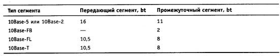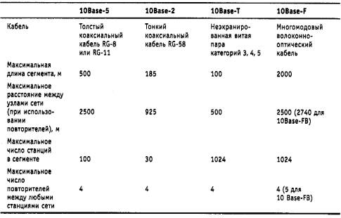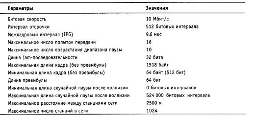 Таблица 3.4. Параметры спецификаций физического уровня для стандарта Ethernet