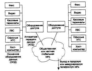Глобальные сети Wide Area Networks, WAN), которые также называют территориальными компьютерными сетями, служат для того, чтобы предоставлять свои сервисы большому количеству конечных абонентов, разбросанных по большой территории - в пределах области, региона, страны, континента или всего земного шара. Ввиду большой протяженности каналов связи построение глобальной сети требует очень больших затрат, в которые входит стоимость кабелей и работ по их прокладке, затраты на коммутационное оборудование и промежуточную усилительную аппаратуру, обеспечивающую необходимую полосу пропускания канала, а также эксплуатационные затраты на постоянное поддержание в работоспособном состоянии разбросанной по большой территории аппаратуры сети. Типичными абонентами глобальной компьютерной сети являются локальные сети предприятий, расположенные в разных городах и странах, которым нужно обмениваться данными между собой. Услугами глобальных сетей пользуются также и отдельные компьютеры. Крупные компьютеры класса мэйнфреймов обычно обеспечивают доступ к корпоративным данным, в то время как персональные компьютеры используются для доступа к корпоративным данным и публичным данным Internet. Глобальные сети обычно создаются крупными телекоммуникационными компаниями для оказания платных услуг абонентам. Такие сети называют публичными или общественными. Существуют также такие понятия, как оператор сети и поставщик услуг сети. Оператор сети (network operator) - это та компания, которая поддерживает нормальную работу сети. Поставщик услуг, часто называемый также провайдером (service provider), - та компания, которая оказывает платные услуги абонентам сети. Владелец, оператор и поставщик услуг могут объединяться в одну компанию, а могут представлять и разные компании. Гораздо реже глобальная сеть полностью создается какой-нибудь крупной корпорацией (такой, например, как Dow Jones или «Транснефть») для своих внутренних нужд. В этом случае сеть называется частной. Очень часто встречается и промежуточный вариант - корпоративная сеть пользуется услугами или оборудованием общественной глобальной сети, но дополняет эти услуги или оборудование своими собственными. Наиболее типичным примером здесь является аренда каналов связи, на основе которых создаются собственные территориальные сети. Кроме вычислительных глобальных сетей существуют и другие виды территориальных сетей передачи информации. В первую очередь это телефонные и телеграфные сети, работающие на протяжении многих десятков лет, а также телексная сеть. Ввиду большой стоимости глобальных сетей существует долговременная тенденция создания единой глобальной сети, которая может передавать данные любых типов: компьютерные данные, телефонные разговоры, факсы, телеграммы, телевизионное изображение, телетекс (передача данных между двумя терминалами), видеотекс (получение хранящихся в сети данных на свой терминал) и т. д., и т. п. На сегодня существенного прогресса в этой области не достигнуто, хотя технологии для создания таких сетей начали разрабатываться достаточно давно - первая технология для интеграции телекоммуникационных услуг ISDN стала развиваться с начала 70-х годов. Пока каждый тип сети существует отдельно и наиболее тесная их интеграция достигнута в области использования общих первичных сетей - се