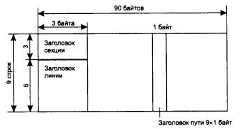 Рис. 6.8. Формат кадра STS-1 Кадр STS-1 состоит из 9 строк и 90 столбцов, то есть из 810 байт данных. Между устройствами сети кадр передается последовательно по байтам - сначала первая строка слева направо, затем вторая и т. д. Первые 3 байта каждой строки представляют собой служебные заголовки. Первые 3 строки представляют собой заголовок из 9 байт протокола уровня секции и содержат данные, необходимые для контроля и реконфигурации секции. Остальные 6 строк составляют заголовок протокола линии, который используется для реконфигурации, контроля и управления линией. Устройства сети SONET/SDH, которые работают с кадрами, имеют достаточный буфер для размещения в нем всех байт кадра, протекающих синхронно через устройство, поэтому устройство для анализа информации на некоторое время имеет полный доступ ко всем частям кадра. Таким образом, размещение служебной информации в несмежных байтах не представляет сложности для обработки кадра. Еще один столбец представляет собой заголовок протокола пути. Он используется для указания местоположения виртуальных контейнеров внутри кадра, если кадр переносит низкоскоростные данные пользовательских каналов типа Т1/Е1. Местоположение виртуальных контейнеров задается не жестко, а с помощью системы указателей (pointers). Концепция указателей является ключевой в технологии SONET/SDH. Указатель призван обеспечить синхронную передачу байт кадров с асинхронным характером вставляемых и удаляемых пользовательских данных. Указатели используются на разных уровнях. Рассмотрим, как с помощью указателя выполняется выделение поля данных кадра из синхронного потока байт. Несмотря на питание всех устройств сети SONET/SDH тактовой частотой синхронизации из одного центрального источника, синхронизация между различными сетями может незначительно нарушаться. Для компенсации этого эффекта началу поля данных кадра (называемого в стандарте SPE - Synchronous Payload Environment) разрешается смещаться относительно начала кадра произвольным образом. Реальное начало поля SPE задается указателем HI, размещенным в заголовке протокола линии. Каждый узел, поддерживающий протокол линии, обязан следить за частотой поступающих данных и компенсировать ее несовпадение с собственной частотой за счет вставки или удаления одного байта из служебного заголовка. Затем узел должен нарастить или уменьшить значения указателя первого байта поля данных СРЕ относительно начала кадра STS-1. В результате поле данных может размещаться в двух последовательных кадрах, как это показано на рис. 6.9.