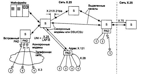 Стандарт Х.25 «Интерфейс между оконечным оборудованием данных и аппаратурой передачи данных для терминалов, работающих в пакетном режиме в сетях передачи данных общего пользования» был разработан комитетом CCITT в 1974 году и пересматривался несколько раз. Стандарт наилучшим образом подходит для передачи трафика низкой интенсивности, характерного для терминалов, и в меньшей степени соответствует более высоким требованиям трафика локальных сетей. Как видно из названия, стандарт не описывает внутреннее устройство сети Х.25, а только определяет пользовательский интерфейс с сетью. Взаимодействие двух сетей Х.25 определяет стандарт Х.75.