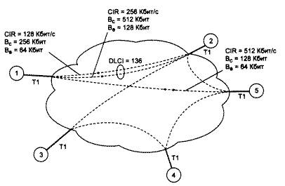 • Важной особенностью технологии frame relay является концепция резервирования пропускной способности при прокладке в сети виртуального канала. Сети frame relay создавались специально для передачи пульсирующего компьютерного трафика, поэтому при резервировании пропускной способности указывается средняя скорость трафика CIR и согласованный объем пульсаций Вс.