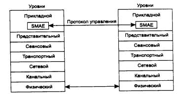 Функциональные области управления системами уже были рассмотрены в разделе 7.1, как имеющие общее значение для любых систем управления. Стандарты ISO в области управления использует терминологию, которая частично совпадает с терминологией систем управления SNMP, а частично от нее отличается. Как показано на рис. 7.9, обмен управляющей информацией с использованием протокола управления (Management Protocol) происходит между субъектами приложений управления системами (Systems Management Application Entities, SMAE). Субъекты SMAE расположены на прикладном уровне семиуровневой модели OSI и являются элементами службы управления. Под субъектом в модели OSI понимается активный в данный момент элемент протокола какого-либо уровня, участвующий во взаимодействии. Примерами SMAE являются агенты и менеджеры систем управления.
